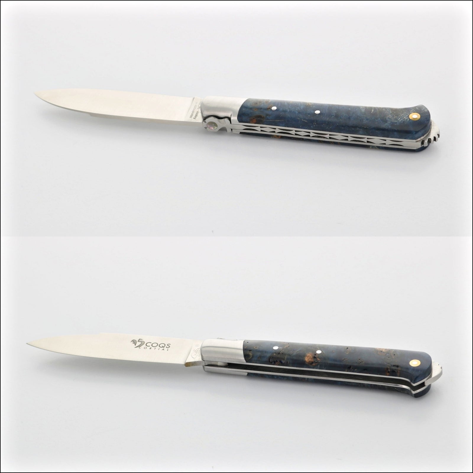 Named after the village of Yssingeaux (translation from local dialect = five cockerels), this knife honors the Gallic Rooster, the unofficial national bird of France. With his rooster crest look-back mechanism and Teflon washers, this charismatic knife's blade action operates smoothly and safely during opening and closing.