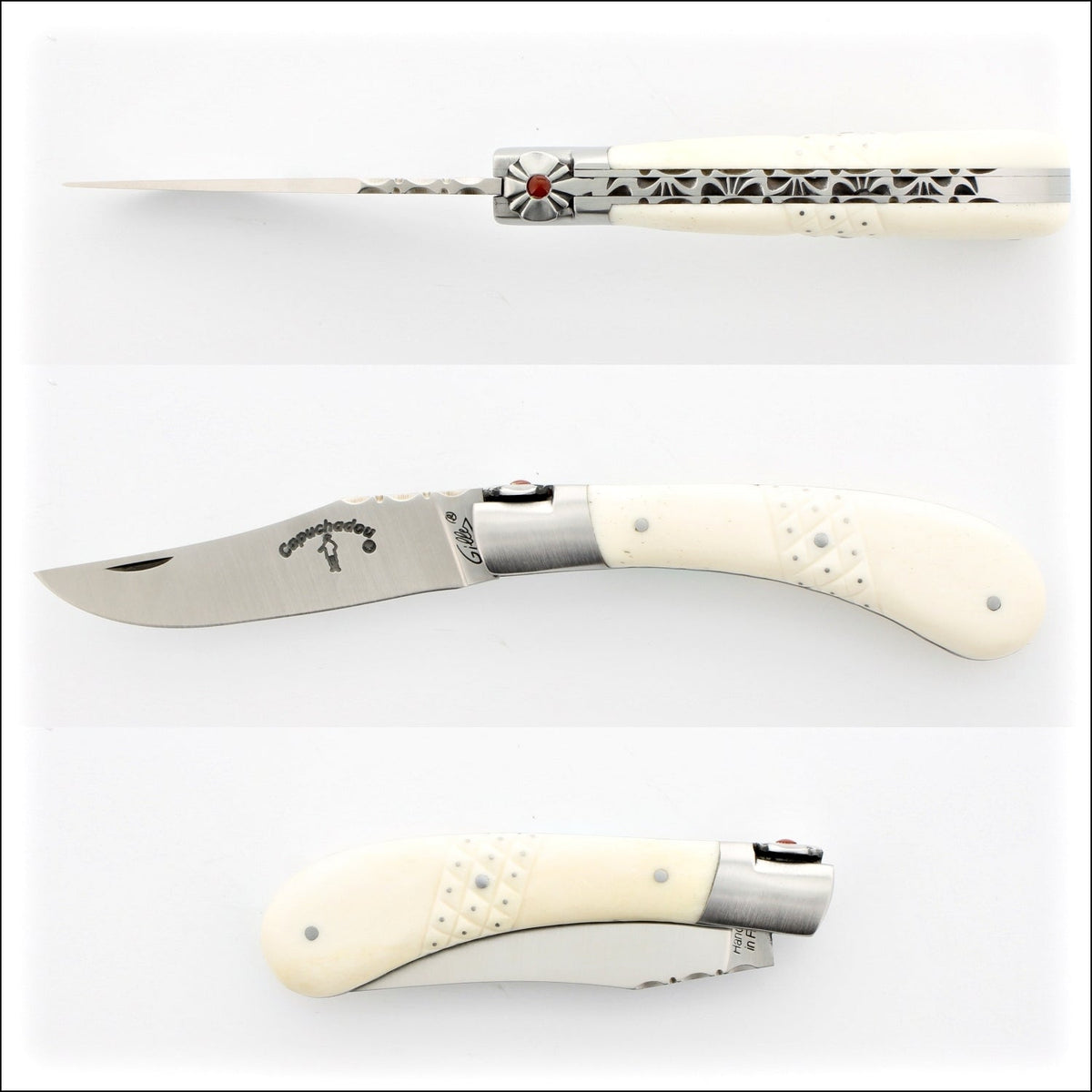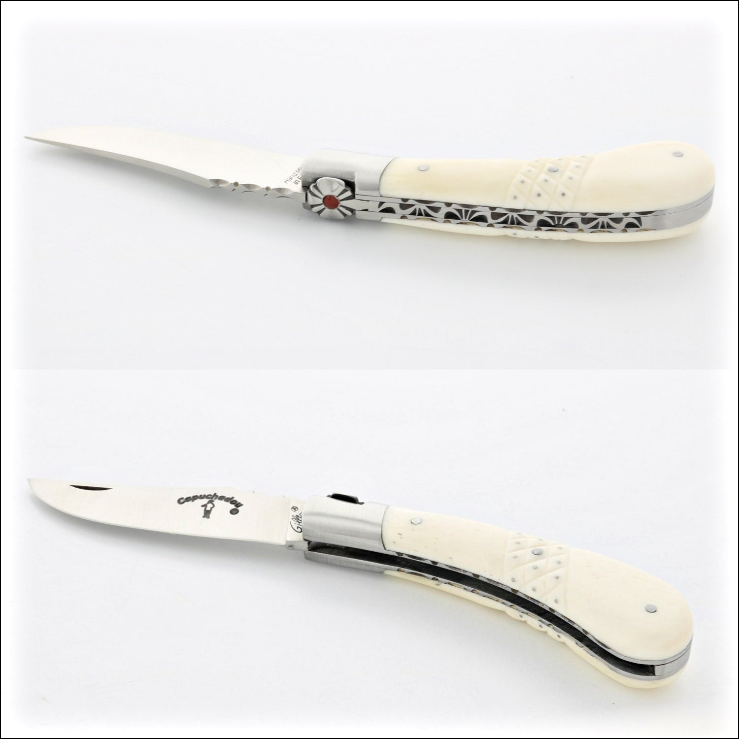 Capuchadou 10 cm Guilloche Folding Knife Studded Bone Handle
