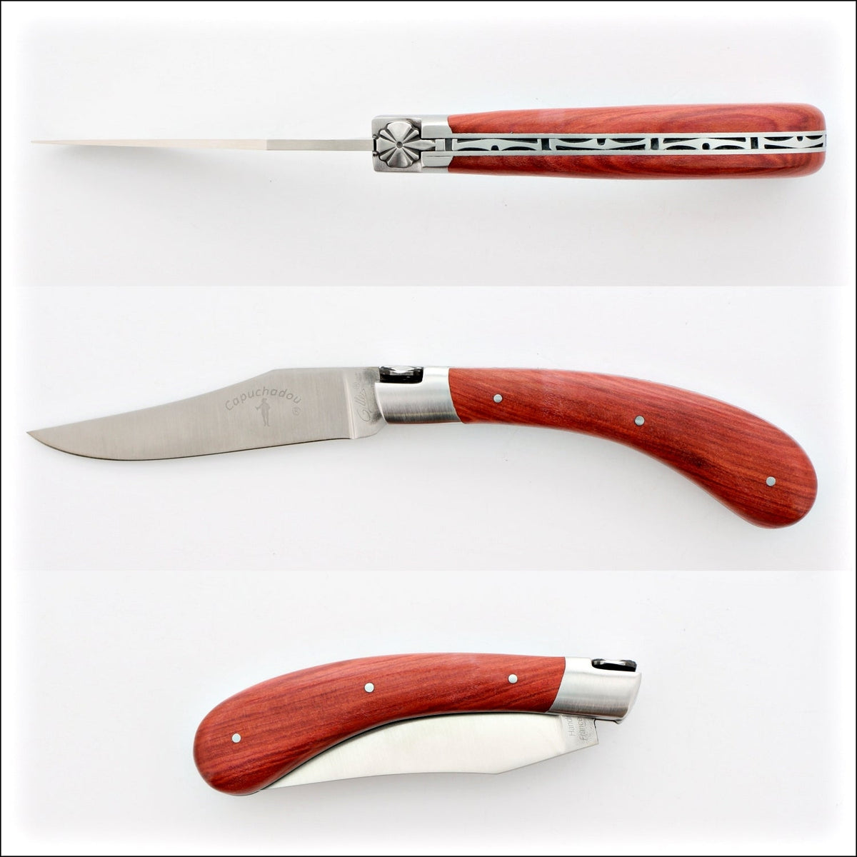Before the early 19th-century emergence of the Laguiole knife, French shepherds relied on a versatile tool known as the "Capuchadou" or "capujadou." This all-purpose pocket knife served various functions, including meal preparation and everyday tasks. The addition of the four-leaf clover symbolized good fortune.