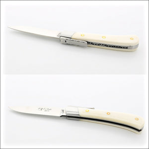 Consider this: This knife is entirely handmade in Europe's capital of cutlery "Thiers." The “Gilles®” Fontenille Pataud collection of knives are considered by many to be some of the best French pocket knives money can buy. All folding Knives offered by Gilles are entirely made by a single craftsman from start to finish ensuring pride of ownership of the final piece. 100% Made in France