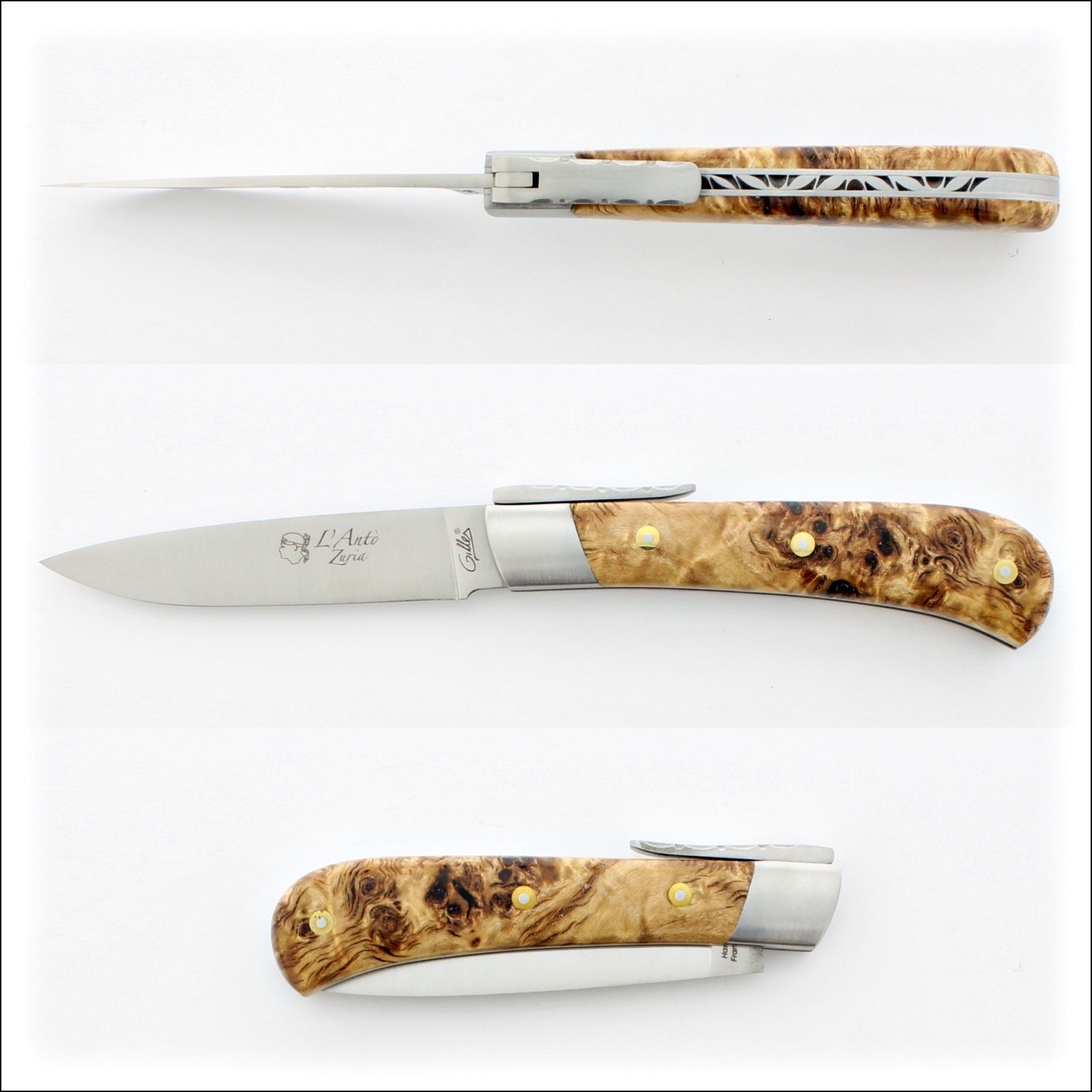 Consider this: This knife is entirely handmade in Europe's capital of cutlery "Thiers." The “Gilles®” Fontenille Pataud collection of knives are considered by many to be some of the best French pocket knives money can buy. All folding Knives offered by Gilles are entirely made by a single craftsman from start to finish ensuring pride of ownership of the final piece. 100% Made in France