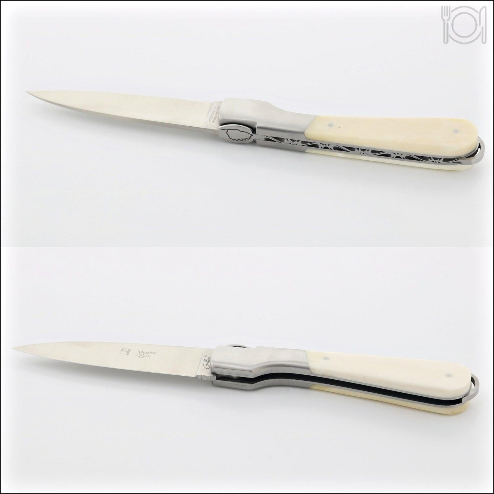Consider this: This knife is entirely handmade in Thiers, Europe's capital of cutlery. The Gilles® Fontenille Pataud collection of knives is highly regarded and considered by many to be among the best pocket knives money can buy. All knives offered by Gilles are made entirely by a single craftsman from start to finish, ensuring that the owner can take pride in the final piece. These knives are 100% made in France.