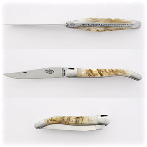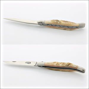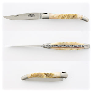 Forge de Laguiole knives are entirely handmade in the village of Laguiole and feature a forged T12 steel blade and a blade stop. Forge de Laguiole knives are indeed and by far of the highest quality offered in the market today. Additionally, each of these masterpieces is entirely handmade by the same craftsman to ensure pride in the completed piece.