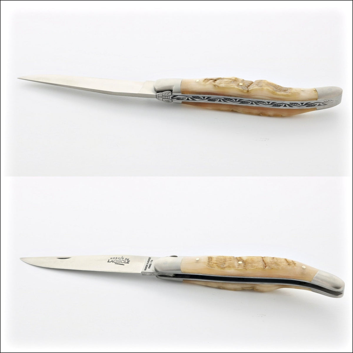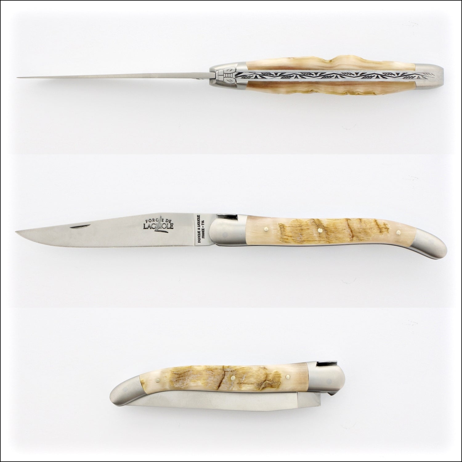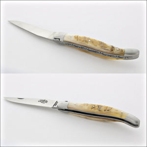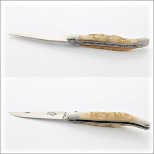Forge de Laguiole knives are entirely handmade in the village of Laguiole and feature a forged T12 steel blade and a blade stop. Forge de Laguiole knives are indeed and by far of the highest quality offered in the market today. Additionally, each of these masterpieces is entirely handmade by the same craftsman to ensure pride in the completed piece.