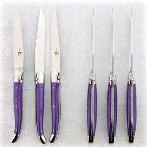 The Original Forge de Laguiole steak knives are used by the greatest Chefs around the world, including dozens of Michelin-Star restaurants. High-end steak knives are never serrated; one should not feel the need to "saw" a steak.