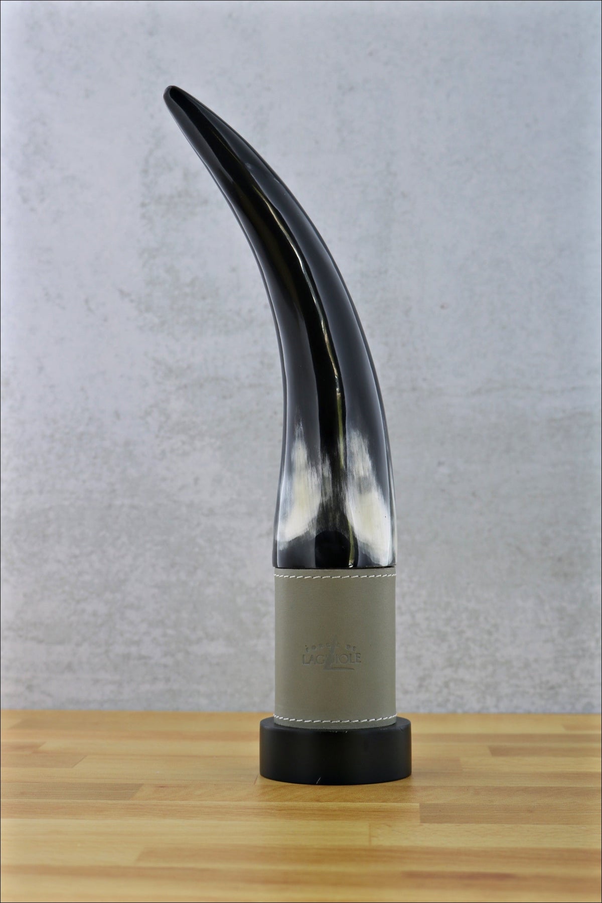 This marvelous mill is crafted from the horn of an Aubrac cattle – encased in wood and finished with genuine leather; its unique design will captivate anyone's gaze!