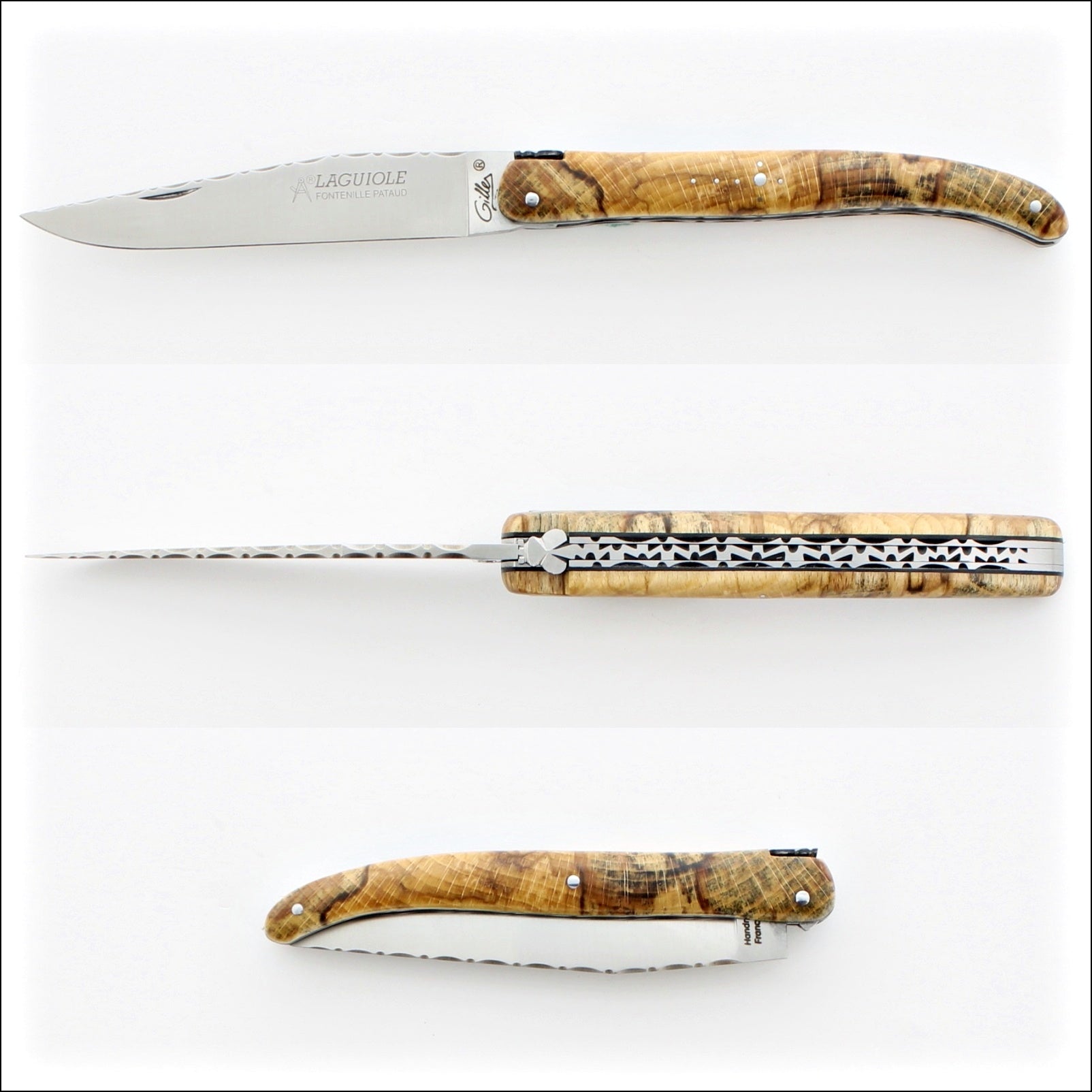 This knife was handmade in Europe's capital of cutlery, "Thiers." The "Gilles®" Fontenille Pataud collection of knives are considered by many to be some of the best pocket knives money can buy. All Knives offered by Gilles are entirely made by a single craftsman from start to finish ensuring pride of ownership of the final piece.100% Made in France