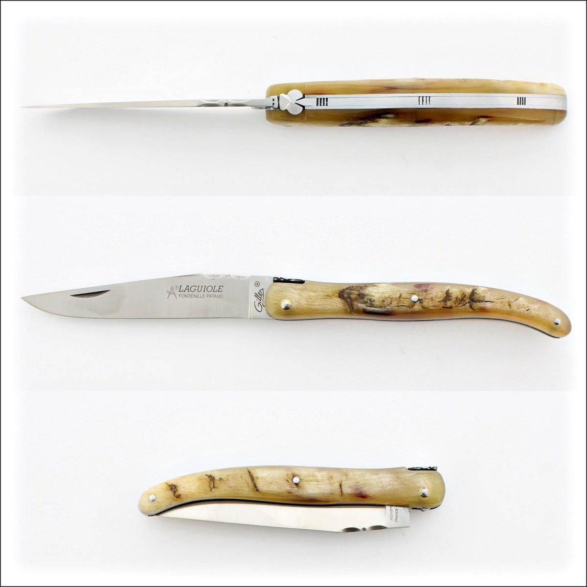 This knife was entirely handmade in Europe's capital of cutlery "Thiers." The “Gilles®” Fontenille Pataud collection of knives are considered by many to be some of the best pocket knives money can buy. All Knives offered by Gilles are entirely made by a single craftsman from start to finish ensuring pride of ownership of the final piece.100% Made in France