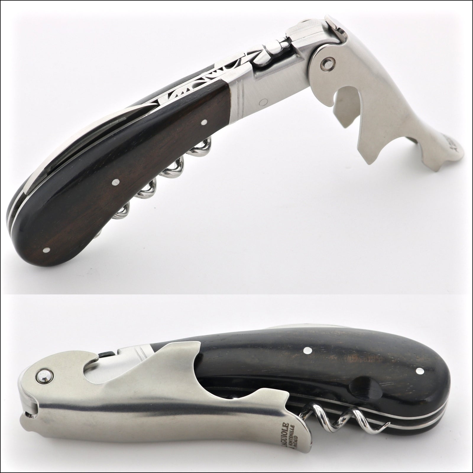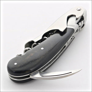A bold version of the legendary Laguiole corkscrew has finally arrived to revolutionize the world of wine accessories. With its sleek patented one-piece two-step boot lever and elegant forged spring & bee design - exquisitely sculpted in one unique and steady piece – this sophisticated waiter's tool makes opening any regular or Magnum bottle effortless! It also has a non-serrated foil cutter for added sharpness and ease of sharpening.