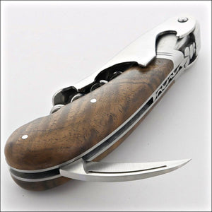A bold version of the legendary Laguiole corkscrew has finally arrived to revolutionize the world of wine accessories. With its sleek patented one-piece two-step boot lever and elegant forged spring & bee design - exquisitely sculpted in one unique and steady piece – this sophisticated waiter's tool makes opening any regular or Magnum bottle effortless! It also has a non-serrated foil cutter for added sharpness and ease of sharpening.