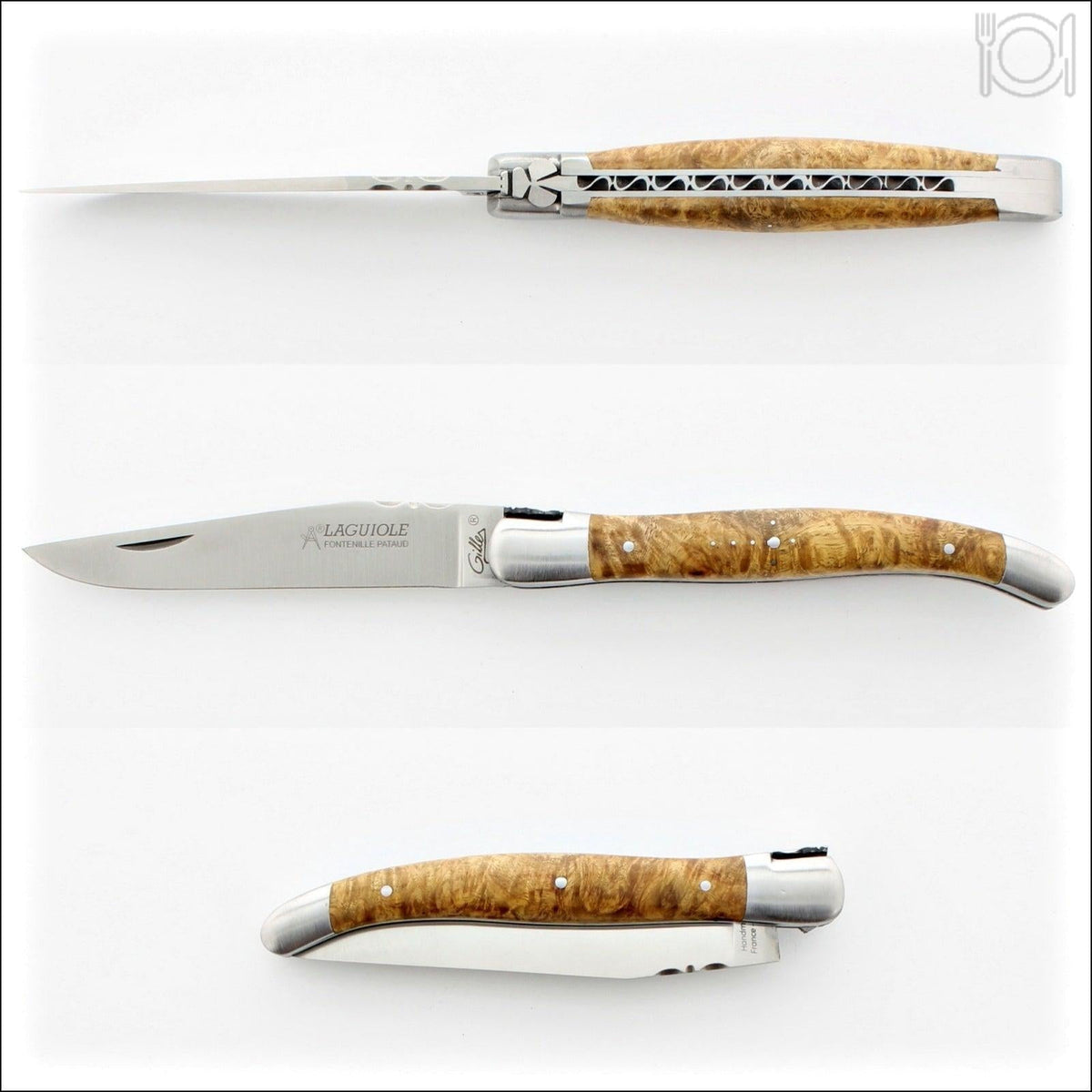 The Laguiole knife originated in Laguiole, France in the early 1820s. Later, its manufacturing was moved to the city of Thiers, France, which was more industrialized. This knife was crafted entirely by hand in Thiers, known as Europe's cutlery capital. The collection of "Gilles®" Fontenille Pataud knives is widely regarded as some of the finest French pocket knives available for purchase.