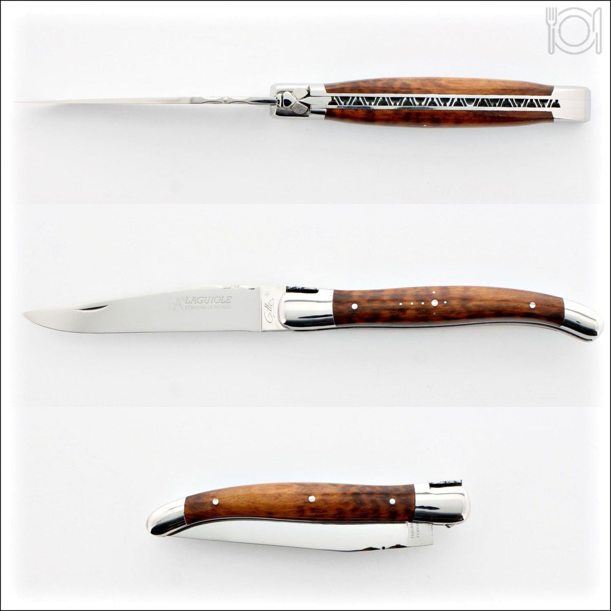 The Laguiole knife originated in Laguiole, France in the early 1820s. Later, its manufacturing was moved to the city of Thiers, France, which was more industrialized. This knife was crafted entirely by hand in Thiers, known as Europe's cutlery capital. The collection of "Gilles®" Fontenille Pataud knives is widely regarded as some of the finest French pocket knives available for purchase.