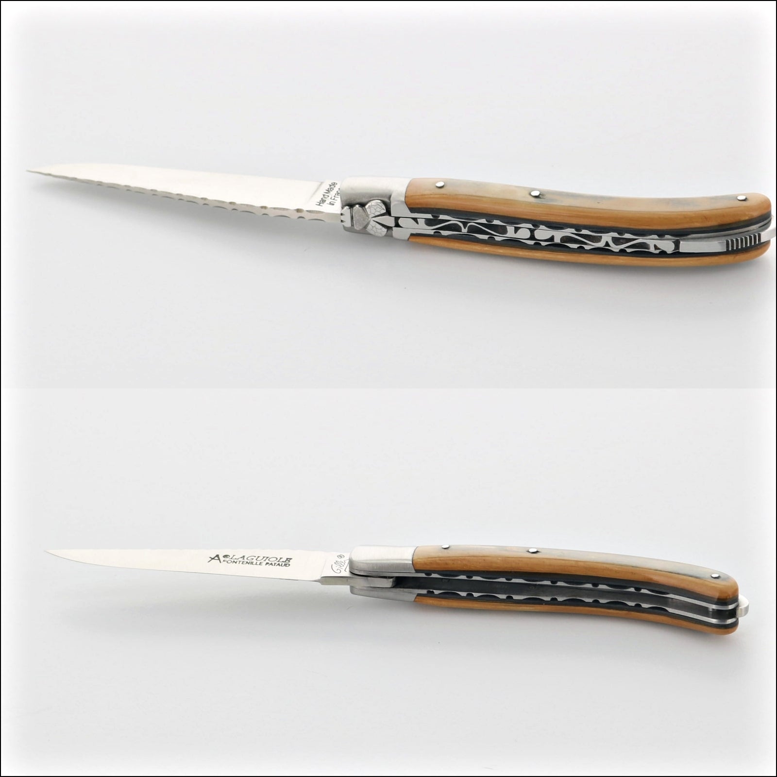 Technical aspects: The Teflon-assisted lockback system ensures smooth and effortless opening and closing. Additionally, the knife boasts a sturdy, hardened blade stop to prevent the blade's edge from touching the spring's inner area. These meticulous details, combined with unparalleled craftsmanship and attention to precision, make each knife genuinely unique. Fontenille Pataud knives are proudly made in France, with utmost quality and dedication.