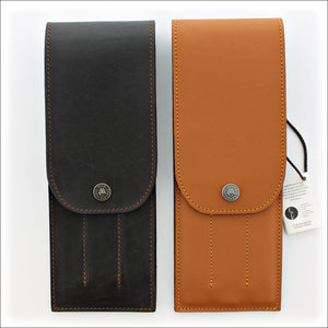 About this sheath: It can accommodate any steak or pocket knife up to 9. 3/4" in length with a blade up to 10/16"wide. It features a metal snap closure. Double stitching can be found on all stress areas to provide years of use without stitch failure. This sheath is made of 1/8-inch thick ultra-soft cowhide full-grain leather.